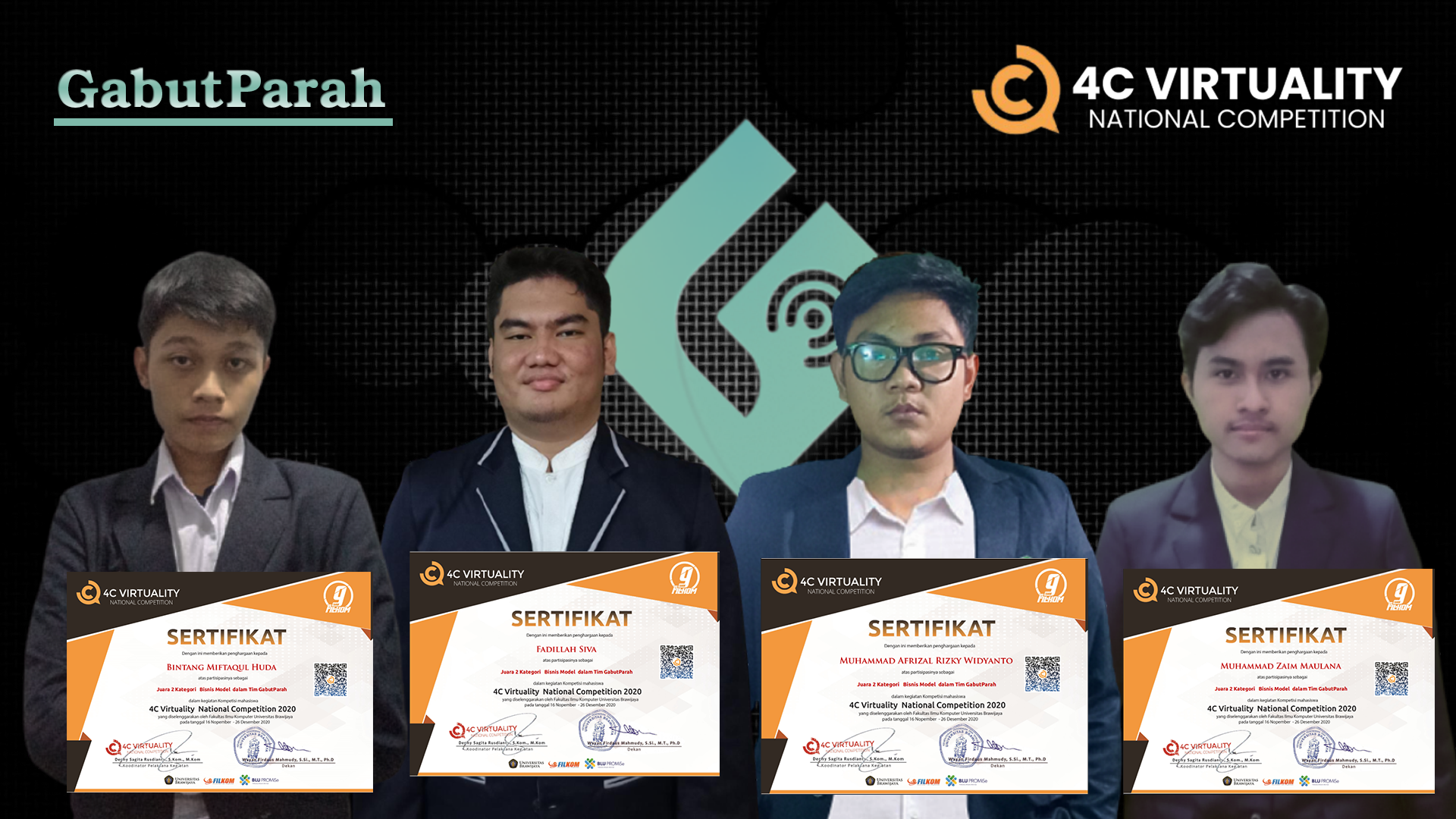 Congratulation for the achievement at 4C Virtuality National Competition – Category Business Model that was held on FILKOM Universitas Brawijaya, 22 December 2020 is addressed to: