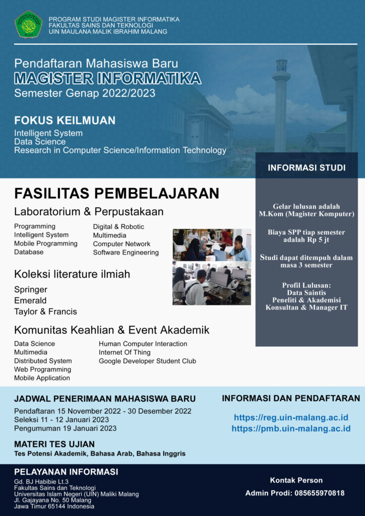 Pendaftaran Mahasiswa Baru Magister Informatika Semester Genap 2022/2023
