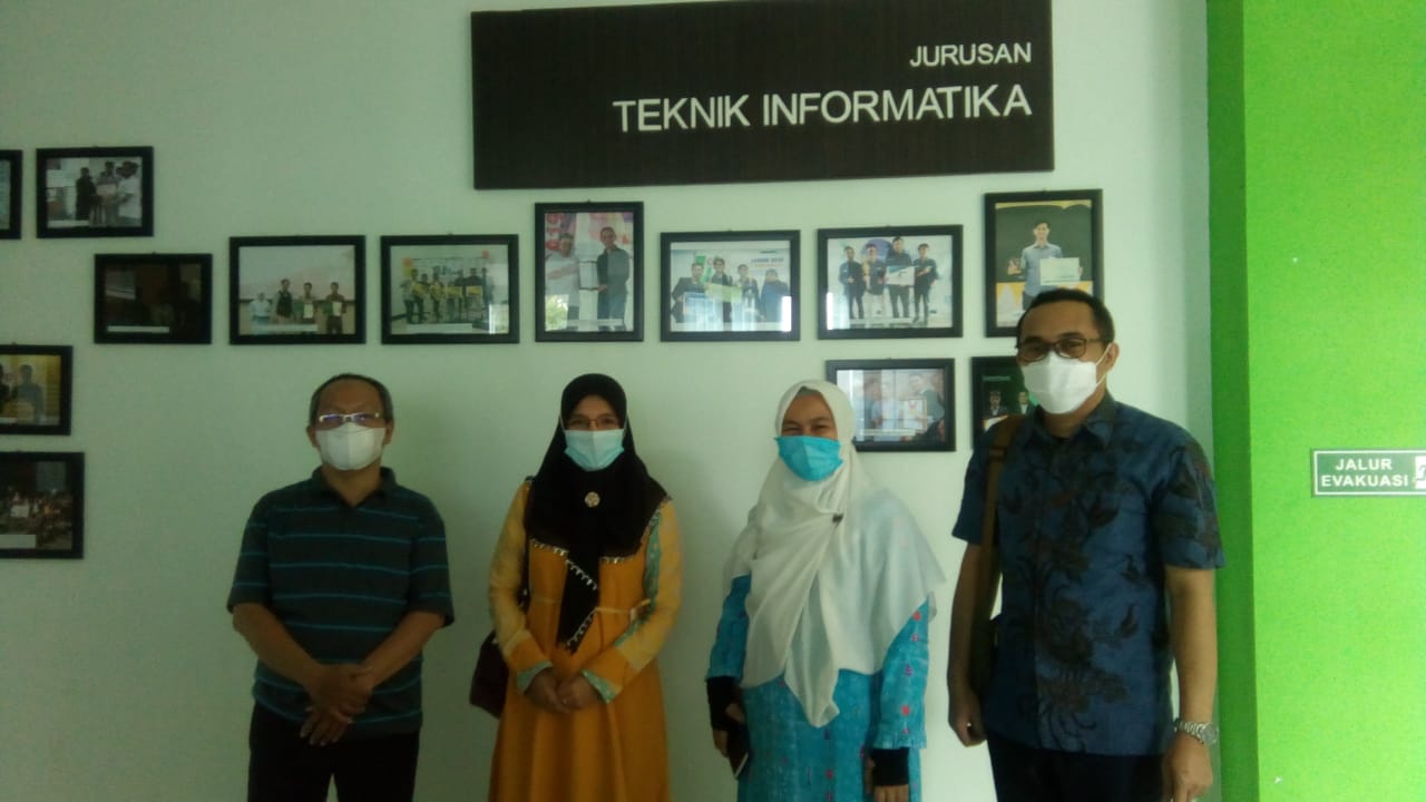 استقبل قسم هندسة المعلومات وفد رئيس قسم نظم المعلومات، كلية العلوم والتكنولوجيا بجامعة سترى باتانجاسا أحمد سياه، مع وفد (3 محاضرين) يوم الجمعة 11 يونيو 2021. وكانت الموضوعات الرئيسية التي تمت مناقشتها في هذه الزيارة تتمحور حول التنظيم والإدارة / التدبير، مرافق ومعدات المختبرات، وأنظمة ضمان الجودة، وكذلك المناهج الدراسية. تأتي هذه الزيارة كنموذج للتعاون بين الأقسام في كليات العلوم والتكنولوجيا في الجامعات الحكومية الإسلامية في إندونيسيا.