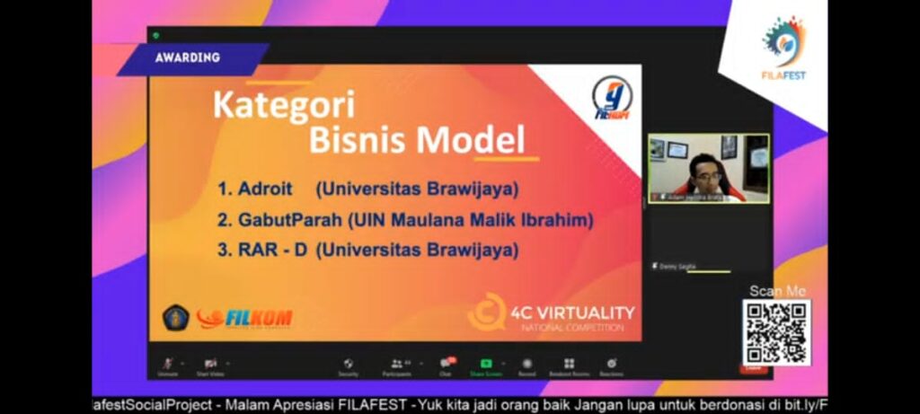 Congratulation for the achievement at 4C Virtuality National Competition – Category Business Model that was held on FILKOM Universitas Brawijaya, 22 December 2020 is addressed to: Muhammad Afrizal Rizky Muhammad Zaim Maulana Fadillah Siva Bintang Miftaqul Huda 4C Virtuality National Competition – Category: Business Model is a competition that expects