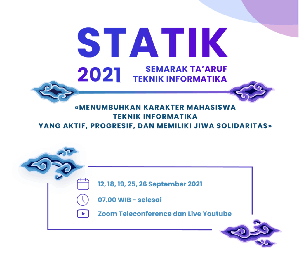 STATIK is an annual event of the Student Association of Computer Science Department that aims to introduce the world of Computer Science at UIN Maulana Malik Ibrahim Malang. The theme of the STATIK 2021 is “Menumbuhkan Karakter Mahasiswa Teknik Informatika yang Aktif, Progresif, dan Memiliki jiwa Solidaritas”. The committee of