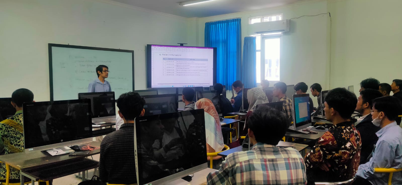 The Informatics study program, in collaboration with the National Professional Certification Agency (BNSP) & LSP TIK Indonesia, carries Certification Competency for lecturers, employees, and students with Certification Scheme Junior Web Developer & Graphic Designer. This activity was held on Monday, June 12 to June 13, 2023, with 40 participants.
