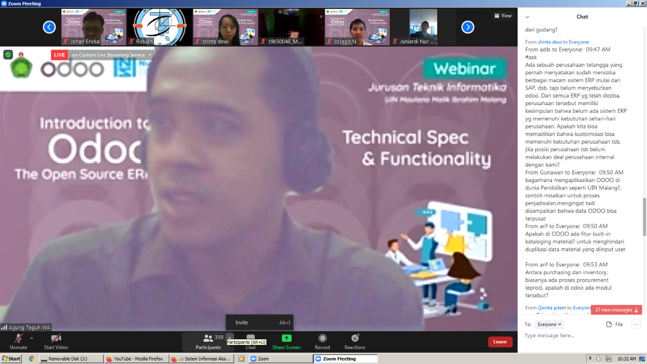 There been held a guest lecture on Monday, 22 March 2021, with the theme of “Introduction to Odoo (Open Source Enterprise Resource Planning)” with the following agenda: