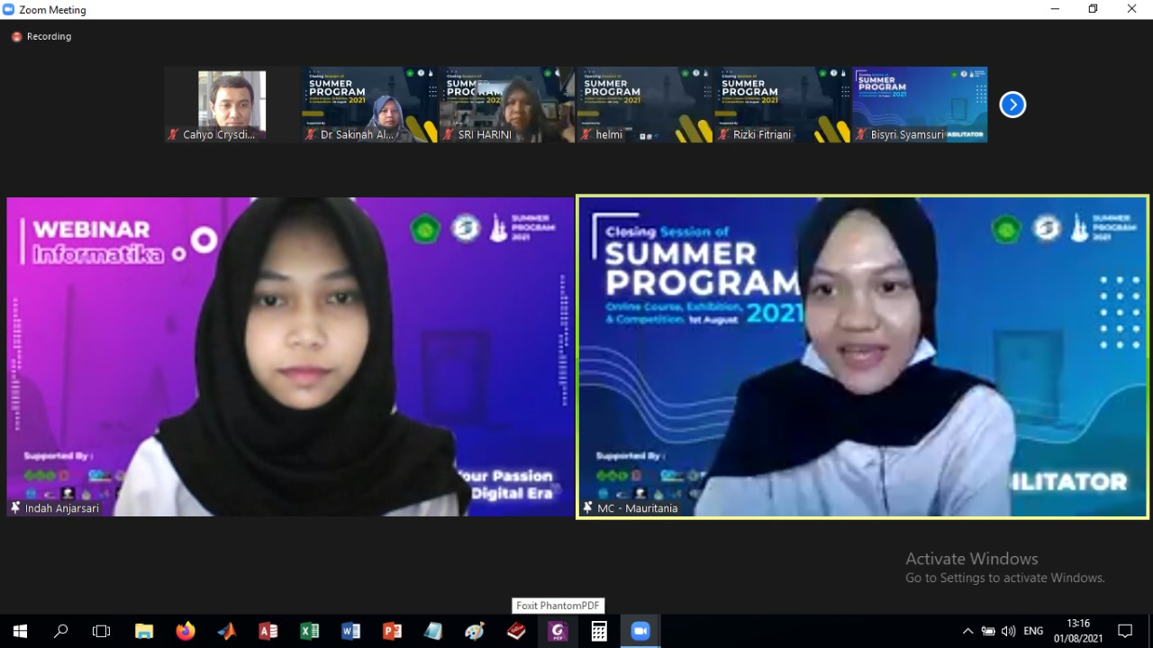 Summer program 2021 aims to share knowledge of information technology (IT) and to expand the collaboration between universities and IT communities. The program is offered to IT practitioners and university students majoring in computer science and other related IT fields. Summer program 2021 is organized by Jurusan Teknik Informatika, Faculty of Science and Technology, UIN Maulana Malik Ibrahim Malang.