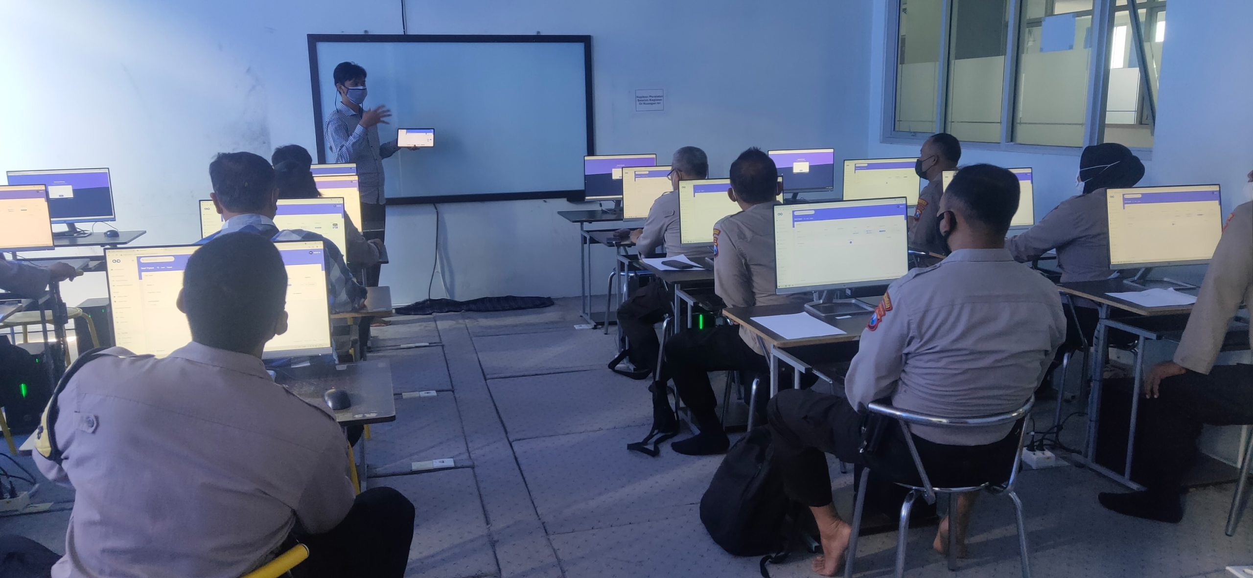 Informatics Engineering Department in collaboration with the Malang City Police conducted a psychological test using the CAT system for the selection of police career improvement (Pendidikan Pindah Kelas/PAG) from Bintara to Perwira, Panda Jatim 2021. This activity was held on Friday, September 10, 2021, with 24 participants.