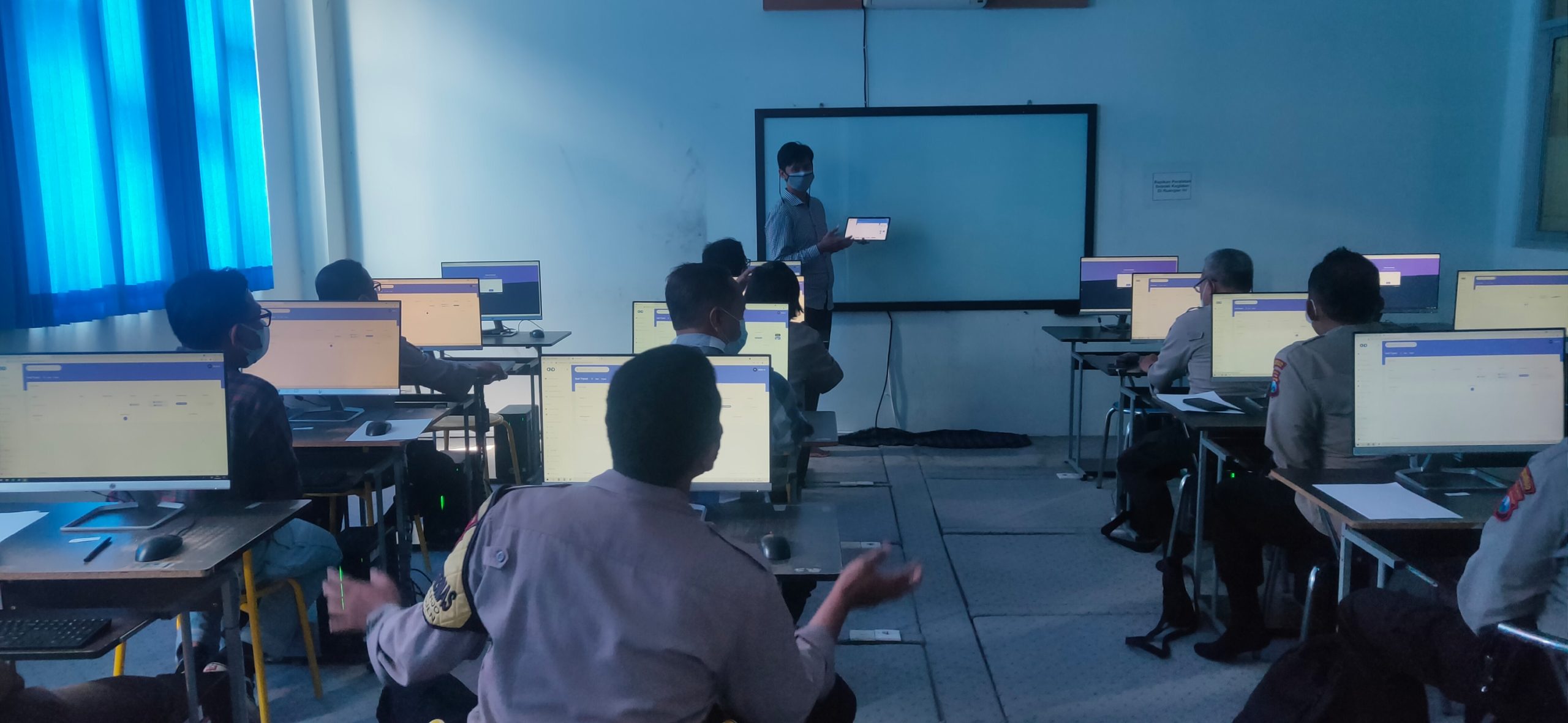 Informatics Engineering Department in collaboration with the Malang City Police conducted a psychological test using the CAT system for the selection of police career improvement (Pendidikan Pindah Kelas/PAG) from Bintara to Perwira, Panda Jatim 2021. This activity was held on Friday, September 10, 2021, with 24 participants.