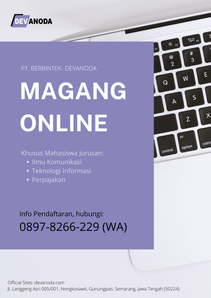 Diberitahukan kepada mahasiswa/i Jurusan Teknik Informatika bahwa DEVanoda perusahaan yang bergerak dalam bidang Teknologi Informasi bernama, dan berkantor di kota Semarang mengundang mahasiswa/i dari UIN Maulana Malik Ibrahim Malang, untuk mengikuti program magang di perusahaan ini dan bisa dikerjakan secara online (remote). para mahasiswa dari UIN Maulana Malik Ibrahim Malang ini, akan senang dengan hal […]